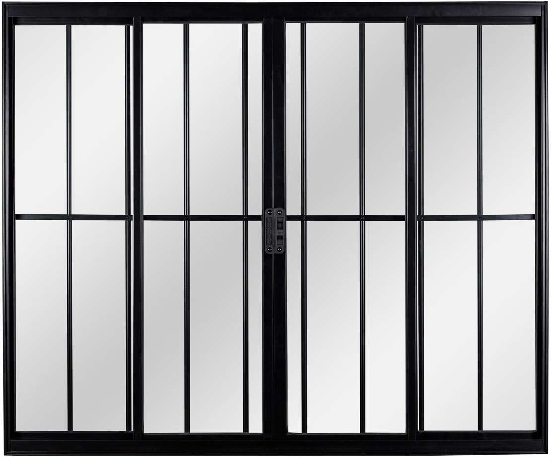 Janela Correr 4 Folhas Com Grade Alumínio Preto - SPJ Modular Plus