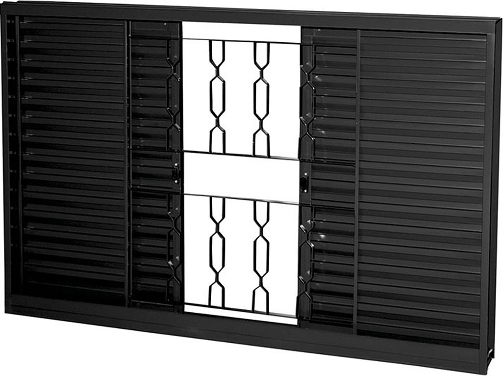 | Modelo de Abertura | De correr, sendo: - 2 folhas móveis centrais com venezianas ventiladas - 2 folhas fixas laterais com venezianas sem ventilação |